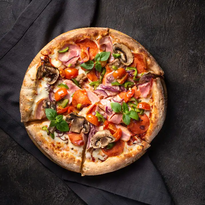 Pizzamme valmistetaan rapeapohjaisina ja runsailla täytteillä. Käytämme laadukasta juustoa, maukasta tomaattikastiketta ja huolella valittuja täytteitä.